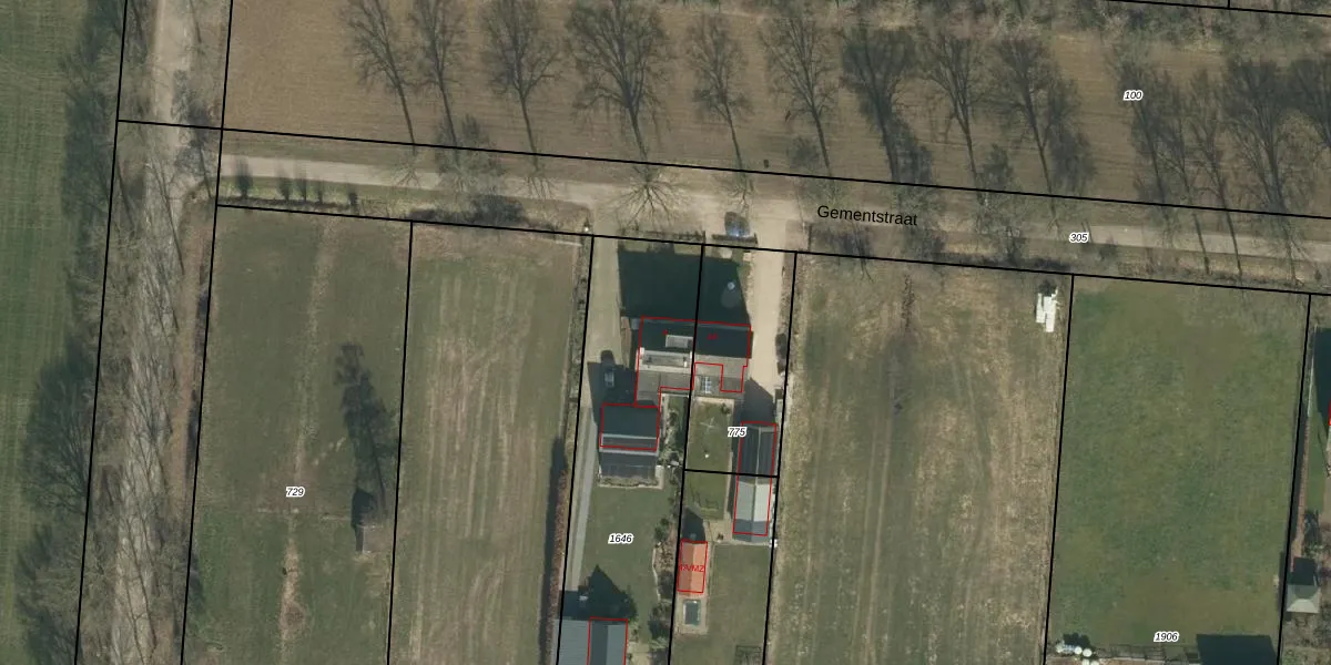 Het perceel waarop Gementstraat 4 staat heeft een oppervlakte van 1465 m². Dit is een zeer groot perceel. De perceeloppervlakte wordt geregistreerd door het Kadaster. Gedetailleerde informatie over de maten van dit perceel kunt u vinden in het rapport Kadastrale kaart met maatvoering van Gementstraat 4.