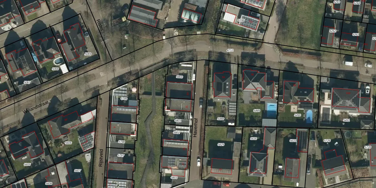 Het perceel waarop Haverhof 23 staat heeft een oppervlakte van 303 m². Dit is een groot perceel. De perceeloppervlakte wordt geregistreerd door het Kadaster. Gedetailleerde informatie over de maten van dit perceel kunt u vinden in het rapport Kadastrale kaart met maatvoering van Haverhof 23.