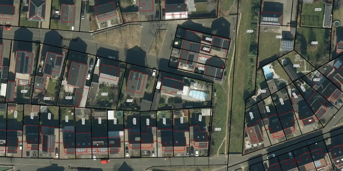 Het perceel waarop Haverhof 36 staat heeft een oppervlakte van 638 m². Dit is een groot perceel. De perceeloppervlakte wordt geregistreerd door het Kadaster. Gedetailleerde informatie over de maten van dit perceel kunt u vinden in het rapport Kadastrale kaart met maatvoering van Haverhof 36.