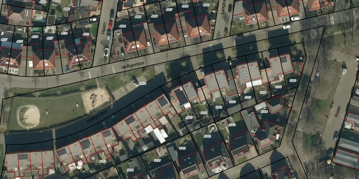 Heiligenbos 30 is gelegen op kadastraal perceel BHM00B5053. Deze kadastrale aanduiding is uniek en wordt gebruikt door het Kadaster om eigendomsrechten en andere zakelijke rechten vast te leggen. Het perceel maakt onderdeel uit van de kadastrale gemeente Berghem.