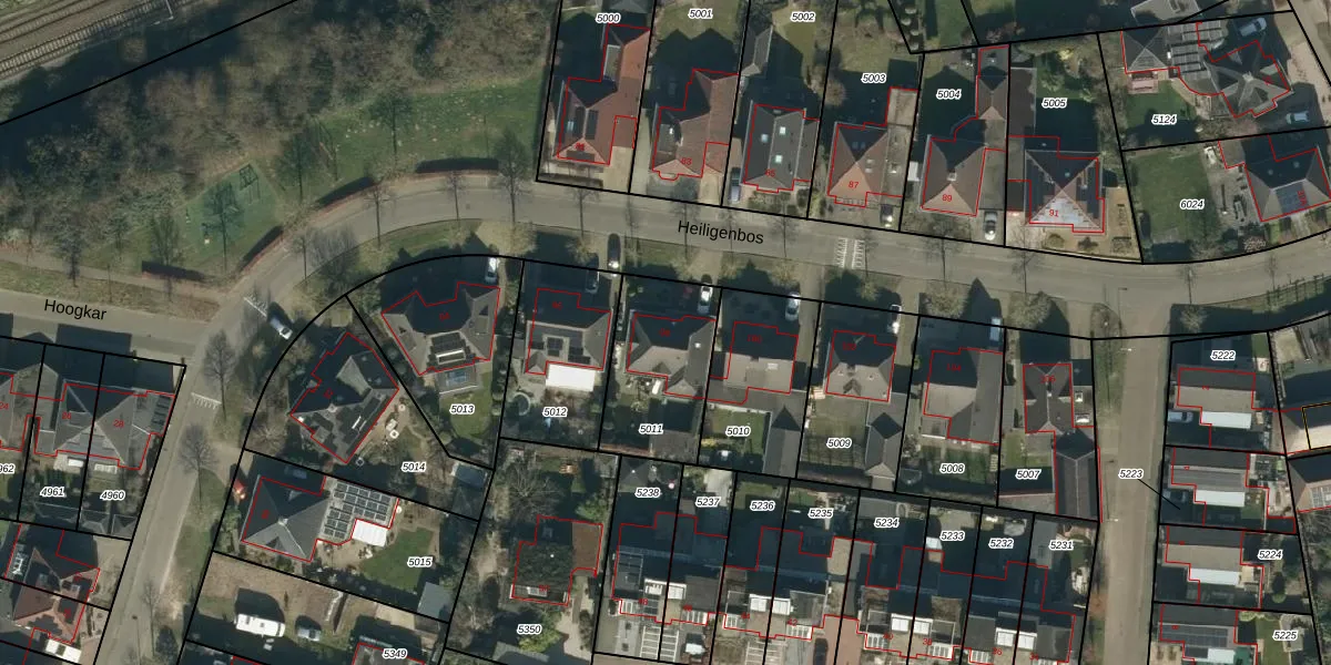 Het perceel waarop Heiligenbos 98 staat heeft een oppervlakte van 405 m². Dit is een groot perceel. De perceeloppervlakte wordt geregistreerd door het Kadaster. Gedetailleerde informatie over de maten van dit perceel kunt u vinden in het rapport Kadastrale kaart met maatvoering van Heiligenbos 98.