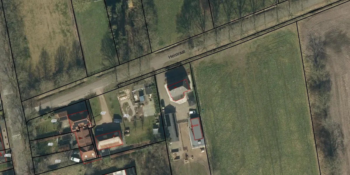Het perceel waarop Heistraat 2-B staat heeft een oppervlakte van 2995 m². Dit is een zeer groot perceel. De perceeloppervlakte wordt geregistreerd door het Kadaster. Gedetailleerde informatie over de maten van dit perceel kunt u vinden in het rapport Kadastrale kaart met maatvoering van Heistraat 2-B.