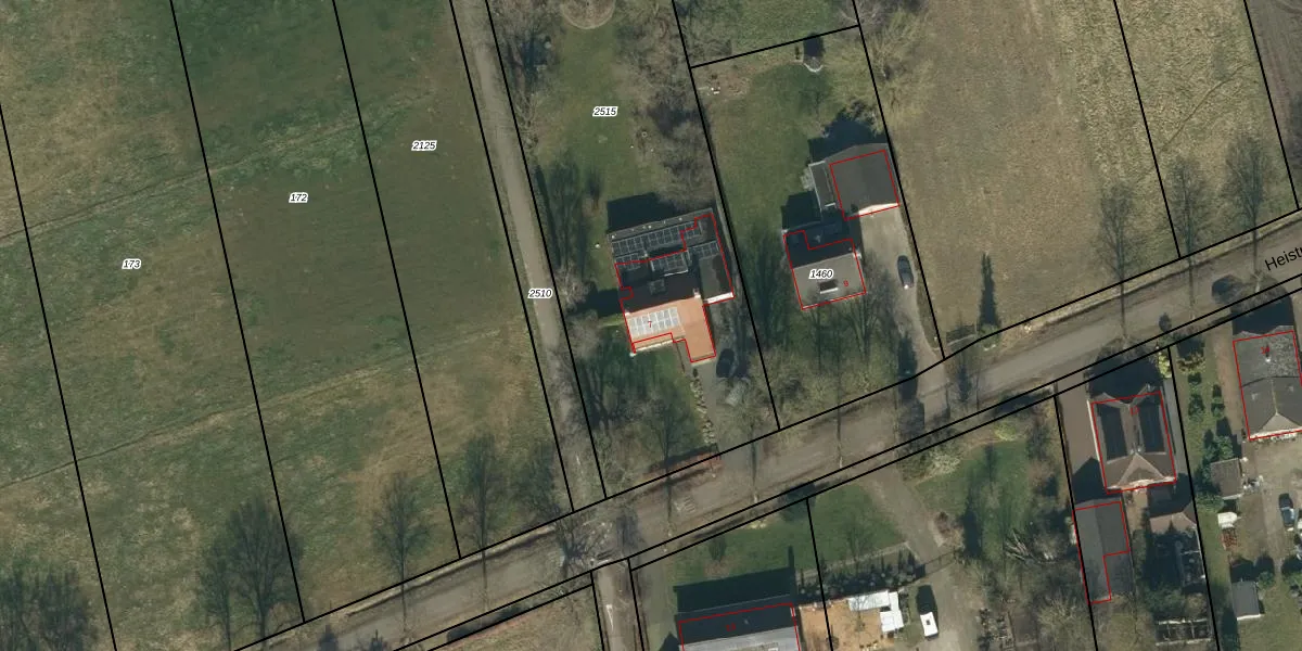 Het perceel waarop Heistraat 7 staat heeft een oppervlakte van 3450 m². Dit is een zeer groot perceel. De perceeloppervlakte wordt geregistreerd door het Kadaster. Gedetailleerde informatie over de maten van dit perceel kunt u vinden in het rapport Kadastrale kaart met maatvoering van Heistraat 7.