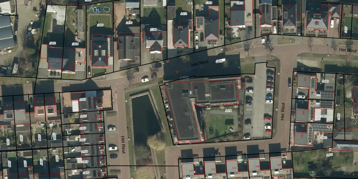 Het perceel waarop Het Reut 122 staat heeft een oppervlakte van 2255 m². Dit is een zeer groot perceel. De perceeloppervlakte wordt geregistreerd door het Kadaster. Gedetailleerde informatie over de maten van dit perceel kunt u vinden in het rapport Kadastrale kaart met maatvoering van Het Reut 122.