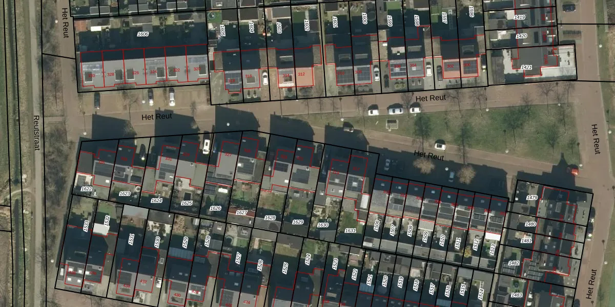 Het perceel waarop Het Reut 321 staat heeft een oppervlakte van 280 m². Dit is een middelgroot perceel. De perceeloppervlakte wordt geregistreerd door het Kadaster. Gedetailleerde informatie over de maten van dit perceel kunt u vinden in het rapport Kadastrale kaart met maatvoering van Het Reut 321.