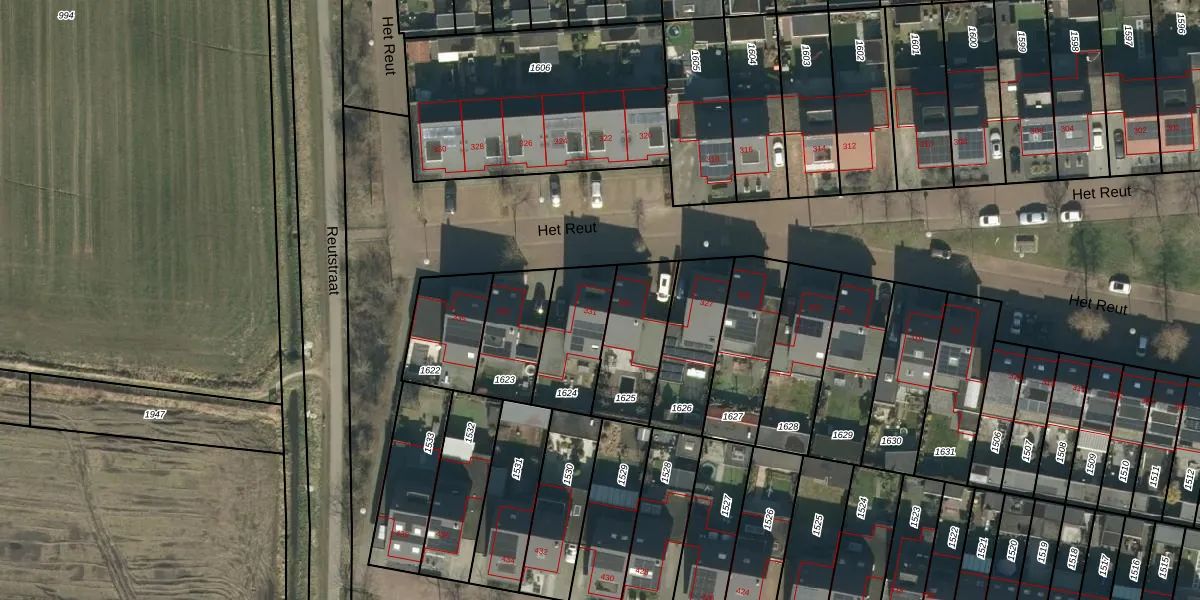 Het perceel waarop Het Reut 331 staat heeft een oppervlakte van 244 m². Dit is een middelgroot perceel. De perceeloppervlakte wordt geregistreerd door het Kadaster. Gedetailleerde informatie over de maten van dit perceel kunt u vinden in het rapport Kadastrale kaart met maatvoering van Het Reut 331.