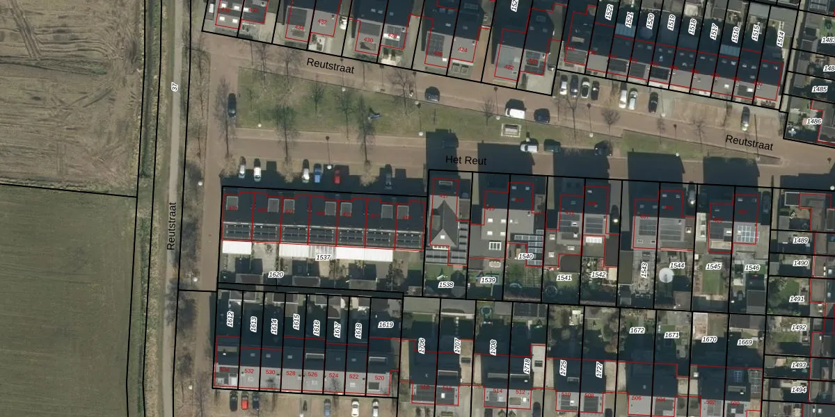 Het perceel waarop Het Reut 419 staat heeft een oppervlakte van 1145 m². Dit is een zeer groot perceel. De perceeloppervlakte wordt geregistreerd door het Kadaster. Gedetailleerde informatie over de maten van dit perceel kunt u vinden in het rapport Kadastrale kaart met maatvoering van Het Reut 419.