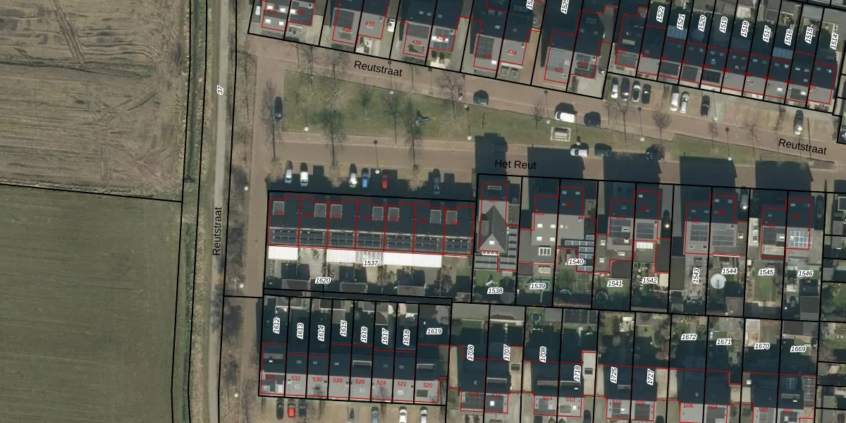 Het perceel waarop Het Reut 421 staat heeft een oppervlakte van 1145 m². Dit is een zeer groot perceel. De perceeloppervlakte wordt geregistreerd door het Kadaster. Gedetailleerde informatie over de maten van dit perceel kunt u vinden in het rapport Kadastrale kaart met maatvoering van Het Reut 421.