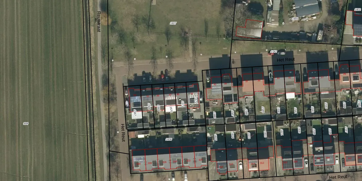 Het Reut 45 is gelegen op kadastraal perceel BHM00D1571. Deze kadastrale aanduiding is uniek en wordt gebruikt door het Kadaster om eigendomsrechten en andere zakelijke rechten vast te leggen. Het perceel maakt onderdeel uit van de kadastrale gemeente Berghem.