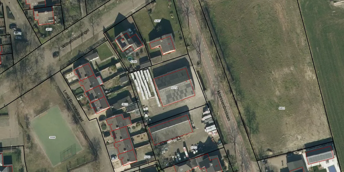 Het perceel waarop Hoessenboslaan 4 staat heeft een oppervlakte van 1200 m². Dit is een zeer groot perceel. De perceeloppervlakte wordt geregistreerd door het Kadaster. Gedetailleerde informatie over de maten van dit perceel kunt u vinden in het rapport Kadastrale kaart met maatvoering van Hoessenboslaan 4.