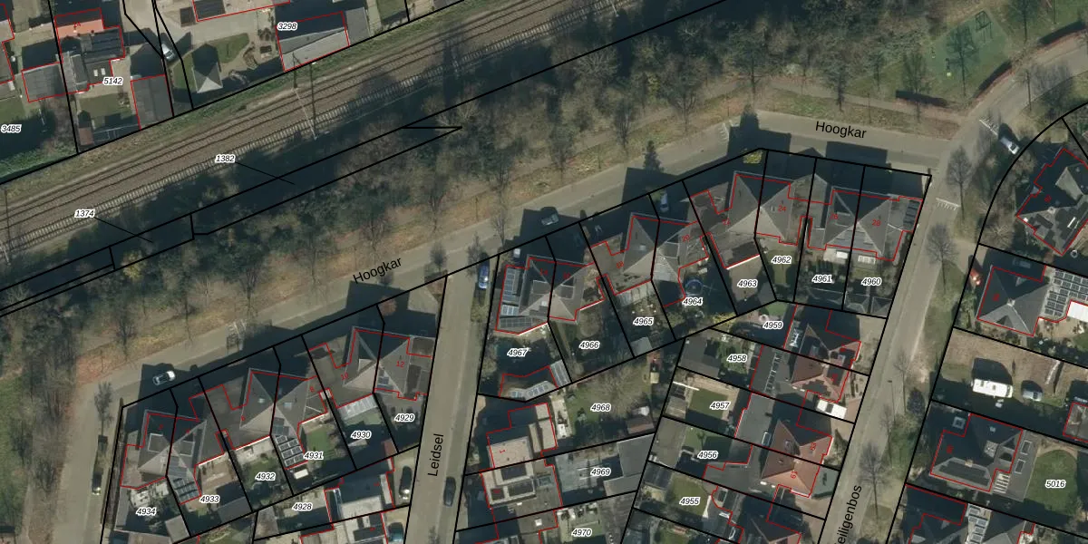 Het perceel waarop Hoogkar 14 staat heeft een oppervlakte van 347 m². Dit is een groot perceel. De perceeloppervlakte wordt geregistreerd door het Kadaster. Gedetailleerde informatie over de maten van dit perceel kunt u vinden in het rapport Kadastrale kaart met maatvoering van Hoogkar 14.