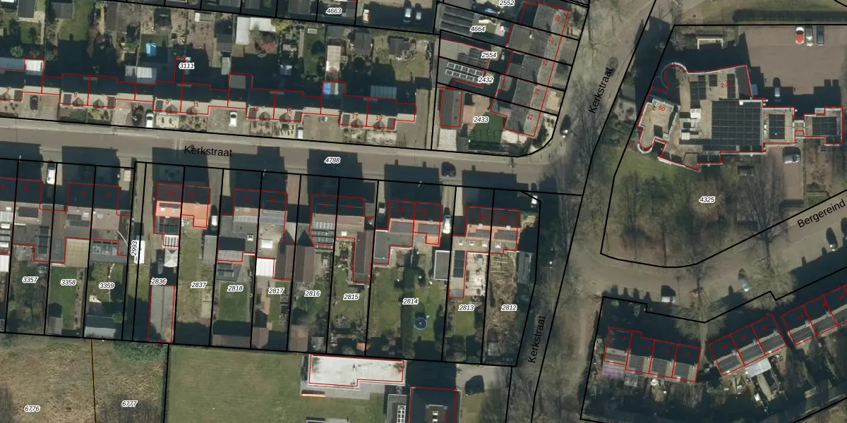 Kerkstraat 36 is gelegen op kadastraal perceel BHM00B2814. Deze kadastrale aanduiding is uniek en wordt gebruikt door het Kadaster om eigendomsrechten en andere zakelijke rechten vast te leggen. Het perceel maakt onderdeel uit van de kadastrale gemeente Berghem.
