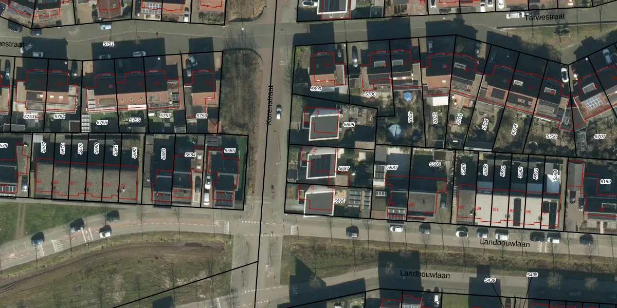 Het perceel waarop Korenstraat 21 staat heeft een oppervlakte van 350 m². Dit is een groot perceel. De perceeloppervlakte wordt geregistreerd door het Kadaster. Gedetailleerde informatie over de maten van dit perceel kunt u vinden in het rapport Kadastrale kaart met maatvoering van Korenstraat 21.