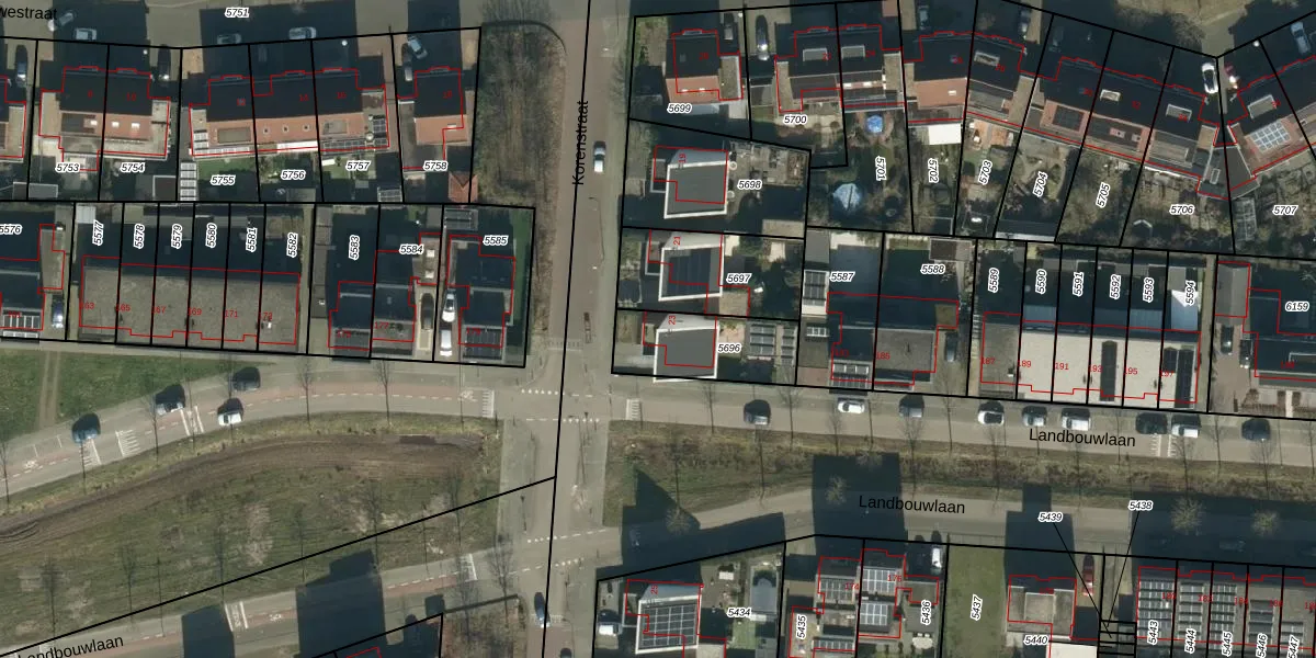 Het perceel waarop Korenstraat 23 staat heeft een oppervlakte van 275 m². Dit is een middelgroot perceel. De perceeloppervlakte wordt geregistreerd door het Kadaster. Gedetailleerde informatie over de maten van dit perceel kunt u vinden in het rapport Kadastrale kaart met maatvoering van Korenstraat 23.