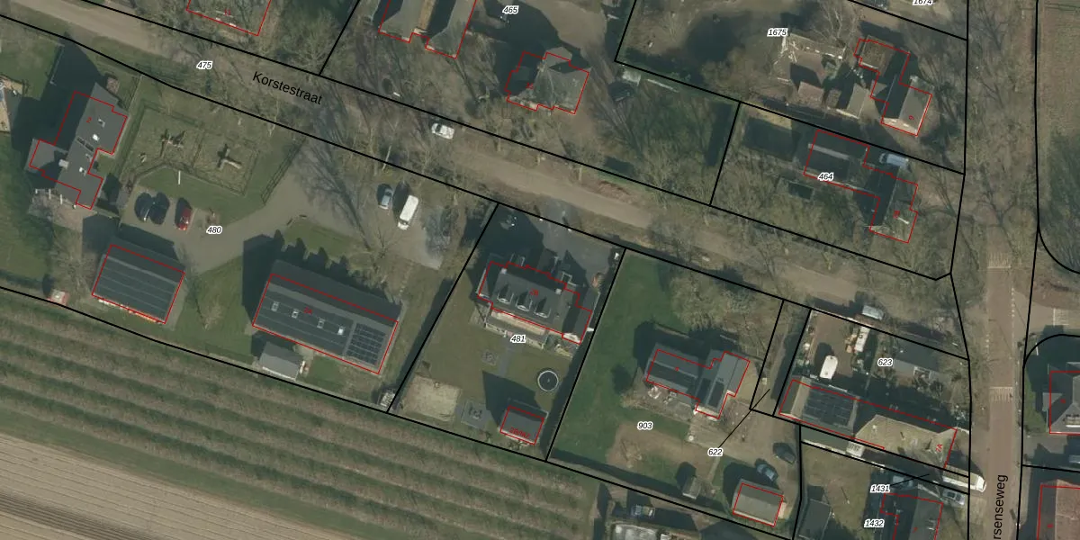 Korstestraat 2-B is gelegen op kadastraal perceel BHM00D481. Deze kadastrale aanduiding is uniek en wordt gebruikt door het Kadaster om eigendomsrechten en andere zakelijke rechten vast te leggen. Het perceel maakt onderdeel uit van de kadastrale gemeente Berghem.