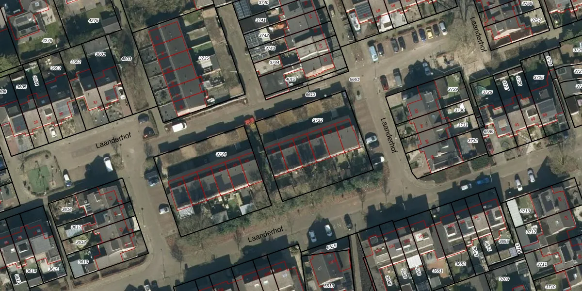 Het perceel waarop Laanderhof 46 staat heeft een oppervlakte van 951 m². Dit is een groot perceel. De perceeloppervlakte wordt geregistreerd door het Kadaster. Gedetailleerde informatie over de maten van dit perceel kunt u vinden in het rapport Kadastrale kaart met maatvoering van Laanderhof 46.