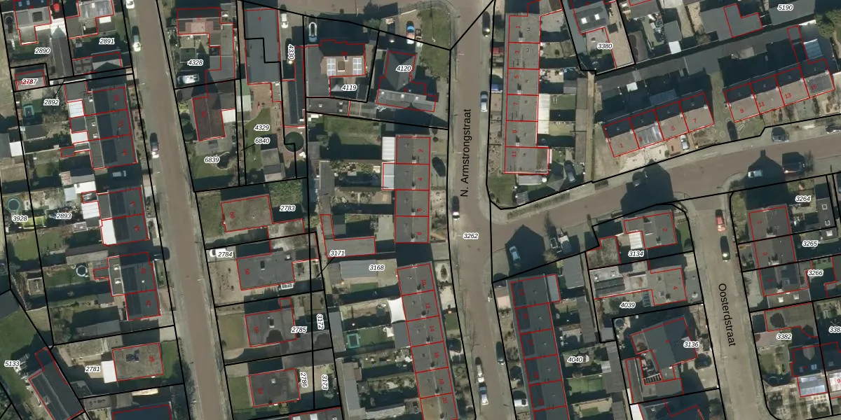 Het perceel waarop N. Armstrongstraat 6 staat heeft een oppervlakte van 2390 m². Dit is een zeer groot perceel. De perceeloppervlakte wordt geregistreerd door het Kadaster. Gedetailleerde informatie over de maten van dit perceel kunt u vinden in het rapport Kadastrale kaart met maatvoering van N. Armstrongstraat 6.