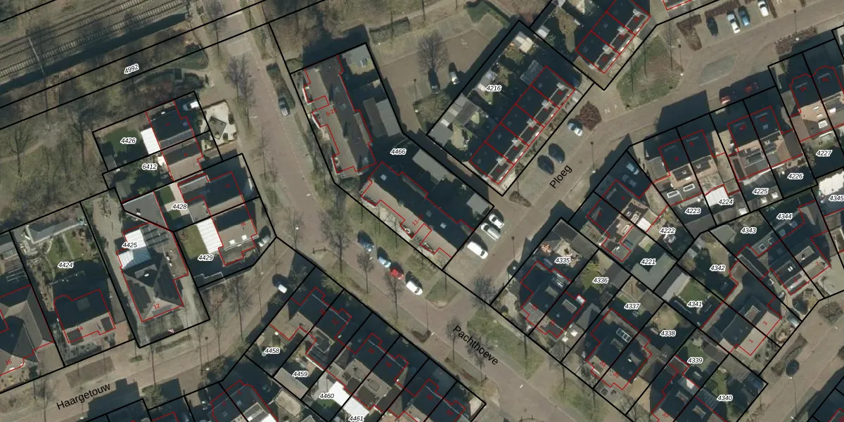 Het perceel waarop Pachthoeve 25 staat heeft een oppervlakte van 1090 m². Dit is een zeer groot perceel. De perceeloppervlakte wordt geregistreerd door het Kadaster. Gedetailleerde informatie over de maten van dit perceel kunt u vinden in het rapport Kadastrale kaart met maatvoering van Pachthoeve 25.