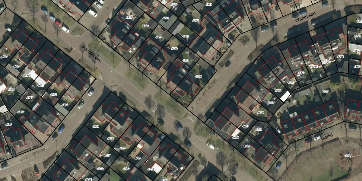 Het perceel waarop Pachthoeve 39 staat heeft een oppervlakte van 314 m². Dit is een groot perceel. De perceeloppervlakte wordt geregistreerd door het Kadaster. Gedetailleerde informatie over de maten van dit perceel kunt u vinden in het rapport Kadastrale kaart met maatvoering van Pachthoeve 39.