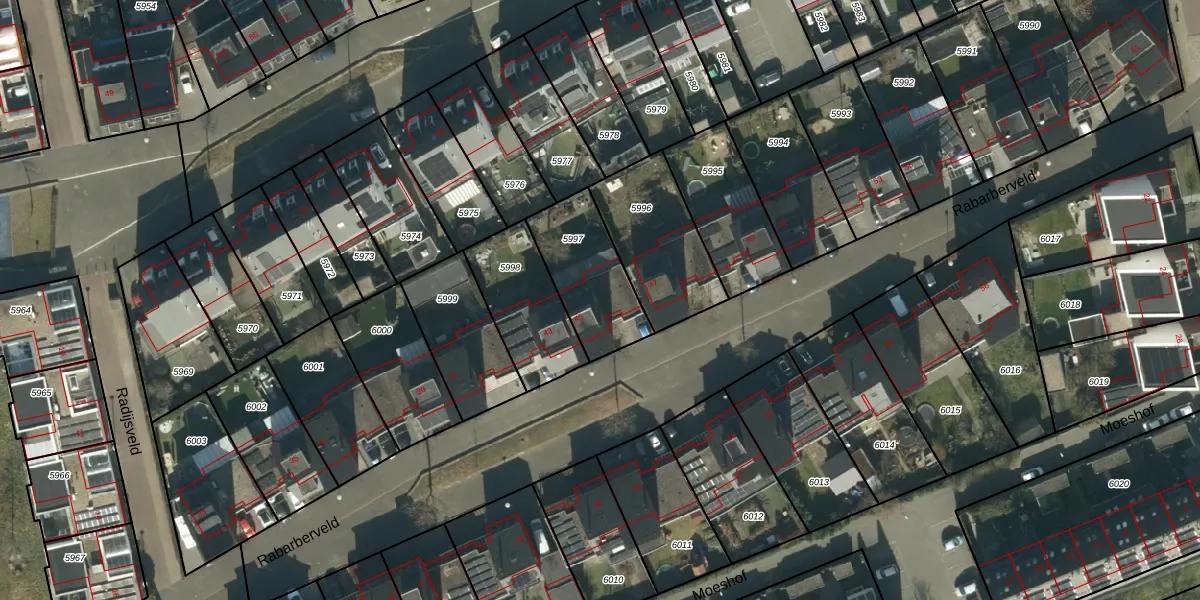 Rabarberveld 45 is gelegen op kadastraal perceel BHM00B5997. Deze kadastrale aanduiding is uniek en wordt gebruikt door het Kadaster om eigendomsrechten en andere zakelijke rechten vast te leggen. Het perceel maakt onderdeel uit van de kadastrale gemeente Berghem.