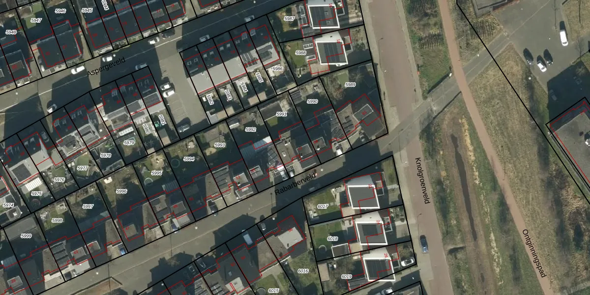 Het perceel waarop Rabarberveld 57 staat heeft een oppervlakte van 319 m². Dit is een groot perceel. De perceeloppervlakte wordt geregistreerd door het Kadaster. Gedetailleerde informatie over de maten van dit perceel kunt u vinden in het rapport Kadastrale kaart met maatvoering van Rabarberveld 57.
