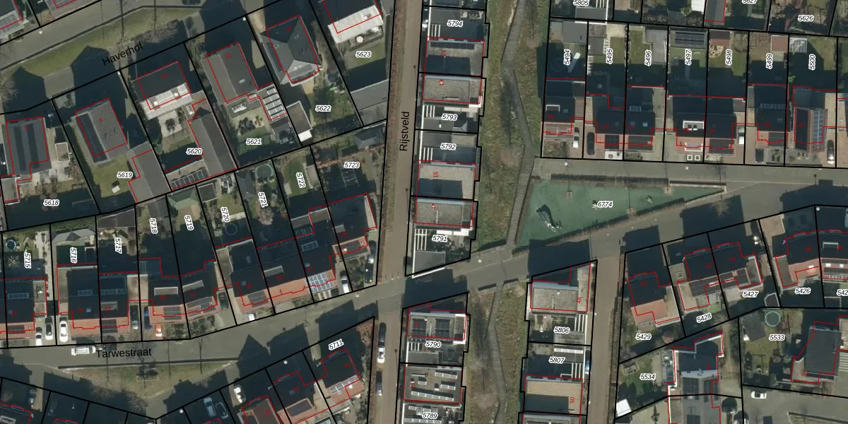 Het perceel waarop Rijstveld 17 staat heeft een oppervlakte van 253 m². Dit is een middelgroot perceel. De perceeloppervlakte wordt geregistreerd door het Kadaster. Gedetailleerde informatie over de maten van dit perceel kunt u vinden in het rapport Kadastrale kaart met maatvoering van Rijstveld 17.