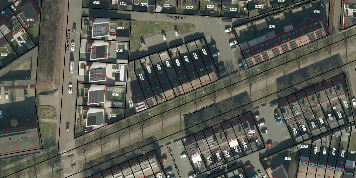 Gebruik de zoekbalk of klik op een perceel voor informatie over de adressen binnen dit perceel.