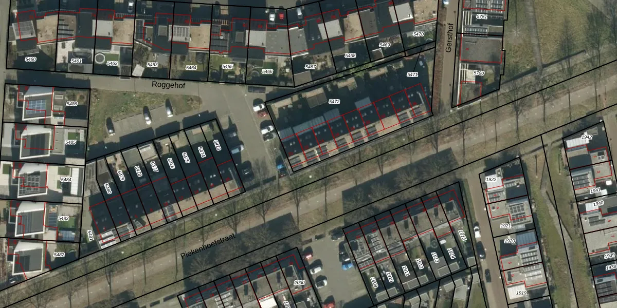 Het perceel waarop Roggehof 22 staat heeft een oppervlakte van 1203 m². Dit is een zeer groot perceel. De perceeloppervlakte wordt geregistreerd door het Kadaster. Gedetailleerde informatie over de maten van dit perceel kunt u vinden in het rapport Kadastrale kaart met maatvoering van Roggehof 22.