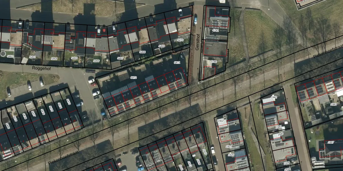Het perceel waarop Roggehof 34 staat heeft een oppervlakte van 1203 m². Dit is een zeer groot perceel. De perceeloppervlakte wordt geregistreerd door het Kadaster. Gedetailleerde informatie over de maten van dit perceel kunt u vinden in het rapport Kadastrale kaart met maatvoering van Roggehof 34.