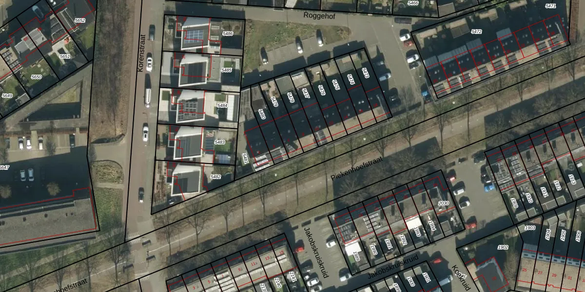 Het perceel waarop Roggehof 6 staat heeft een oppervlakte van 152 m². Dit is een middelgroot perceel. De perceeloppervlakte wordt geregistreerd door het Kadaster. Gedetailleerde informatie over de maten van dit perceel kunt u vinden in het rapport Kadastrale kaart met maatvoering van Roggehof 6.