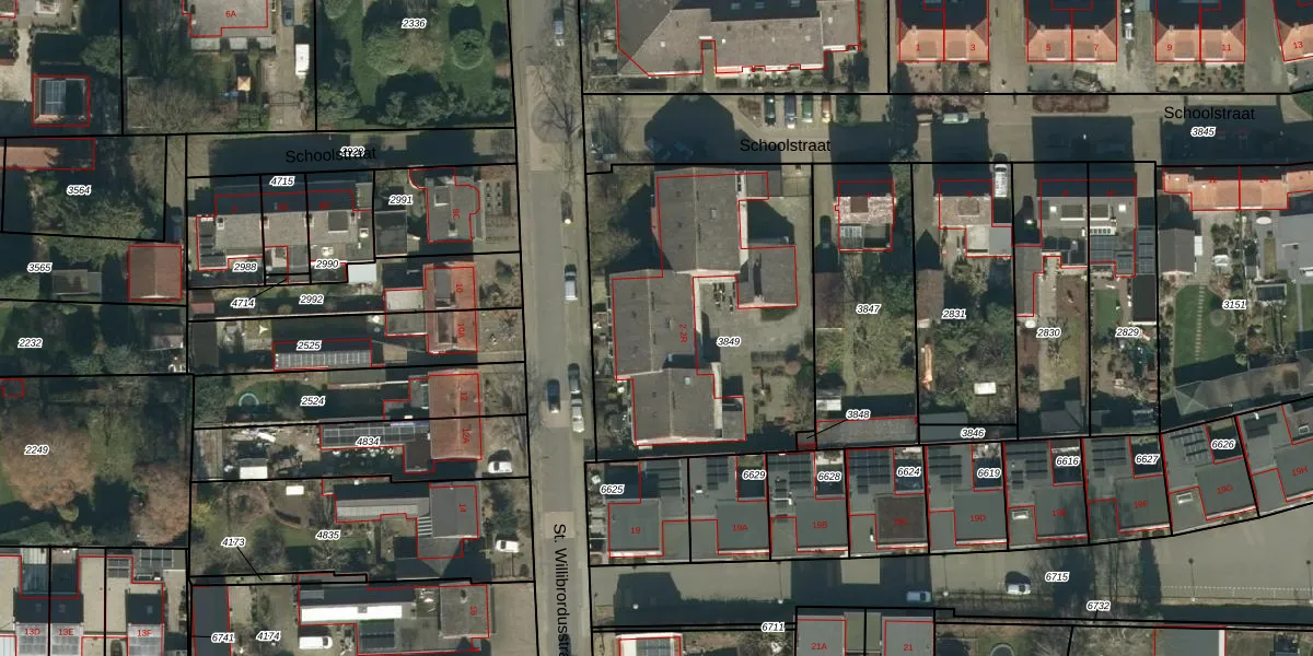 Het perceel waarop Schoolstraat 2-M staat heeft een oppervlakte van 1516 m². Dit is een zeer groot perceel. De perceeloppervlakte wordt geregistreerd door het Kadaster. Gedetailleerde informatie over de maten van dit perceel kunt u vinden in het rapport Kadastrale kaart met maatvoering van Schoolstraat 2-M.