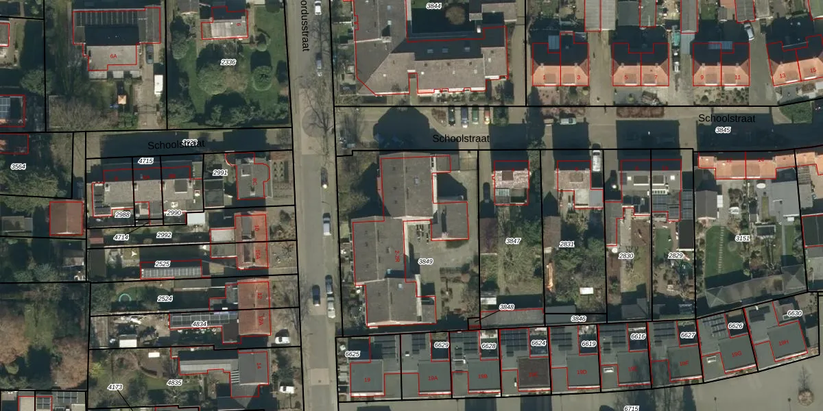Schoolstraat 2-K is gelegen op kadastraal perceel BHM00B3849. Deze kadastrale aanduiding is uniek en wordt gebruikt door het Kadaster om eigendomsrechten en andere zakelijke rechten vast te leggen. Het perceel maakt onderdeel uit van de kadastrale gemeente Berghem.