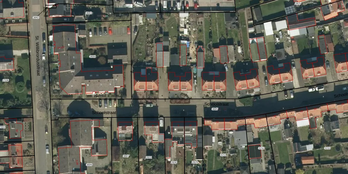 Schoolstraat 5 is gelegen op kadastraal perceel BHM00B5271. Deze kadastrale aanduiding is uniek en wordt gebruikt door het Kadaster om eigendomsrechten en andere zakelijke rechten vast te leggen. Het perceel maakt onderdeel uit van de kadastrale gemeente Berghem.