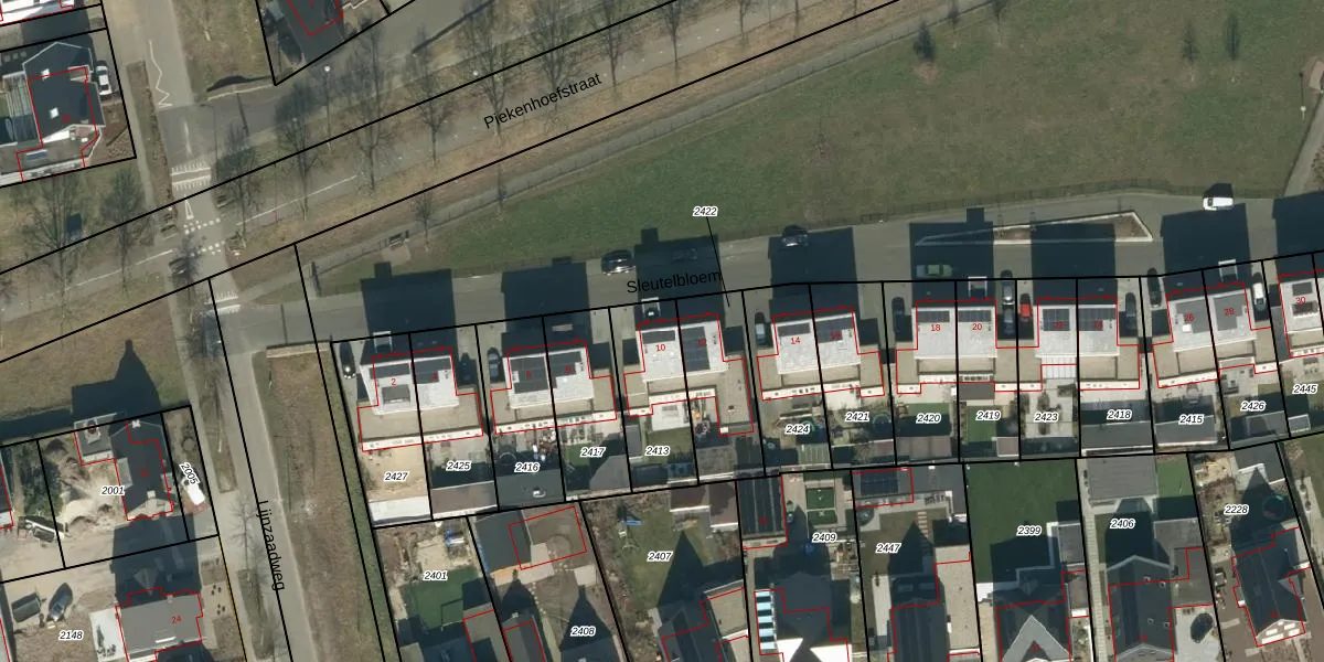 Gebruik de zoekbalk of klik op een perceel voor informatie over de adressen binnen dit perceel.
