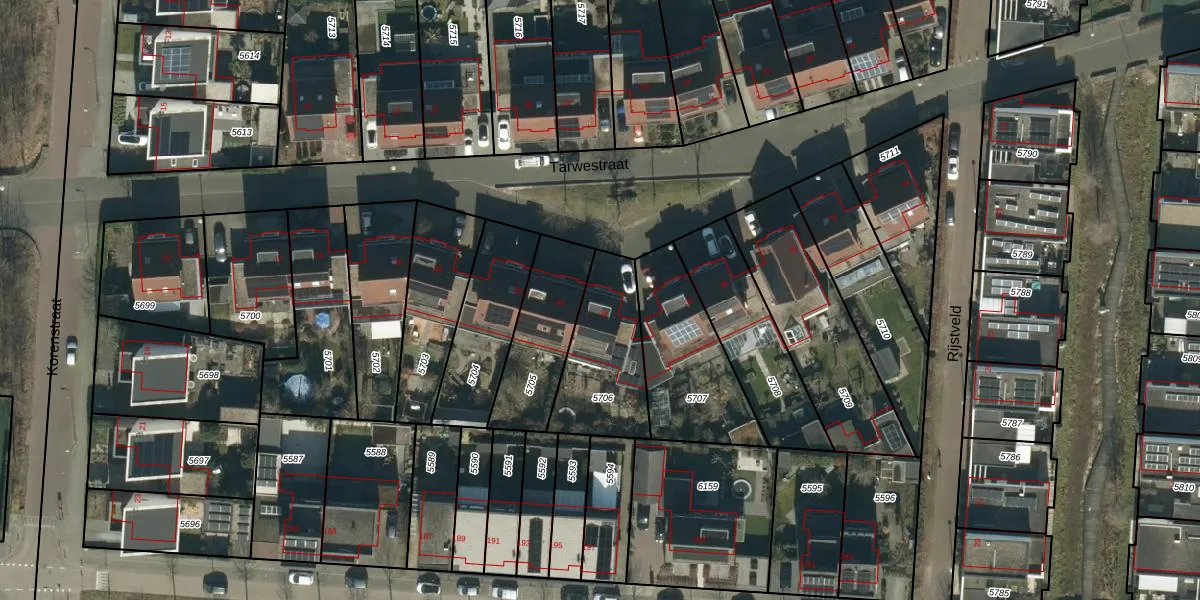 Het perceel waarop Tarwestraat 34 staat heeft een oppervlakte van 368 m². Dit is een groot perceel. De perceeloppervlakte wordt geregistreerd door het Kadaster. Gedetailleerde informatie over de maten van dit perceel kunt u vinden in het rapport Kadastrale kaart met maatvoering van Tarwestraat 34.