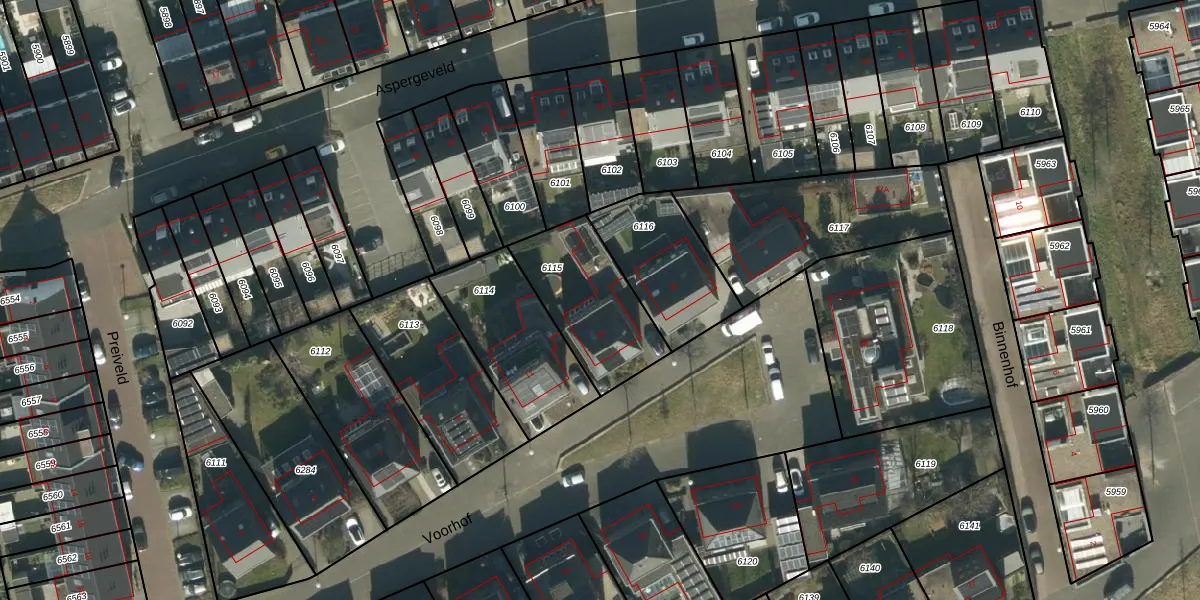 Het perceel waarop Voorhof 13 staat heeft een oppervlakte van 396 m². Dit is een groot perceel. De perceeloppervlakte wordt geregistreerd door het Kadaster. Gedetailleerde informatie over de maten van dit perceel kunt u vinden in het rapport Kadastrale kaart met maatvoering van Voorhof 13.