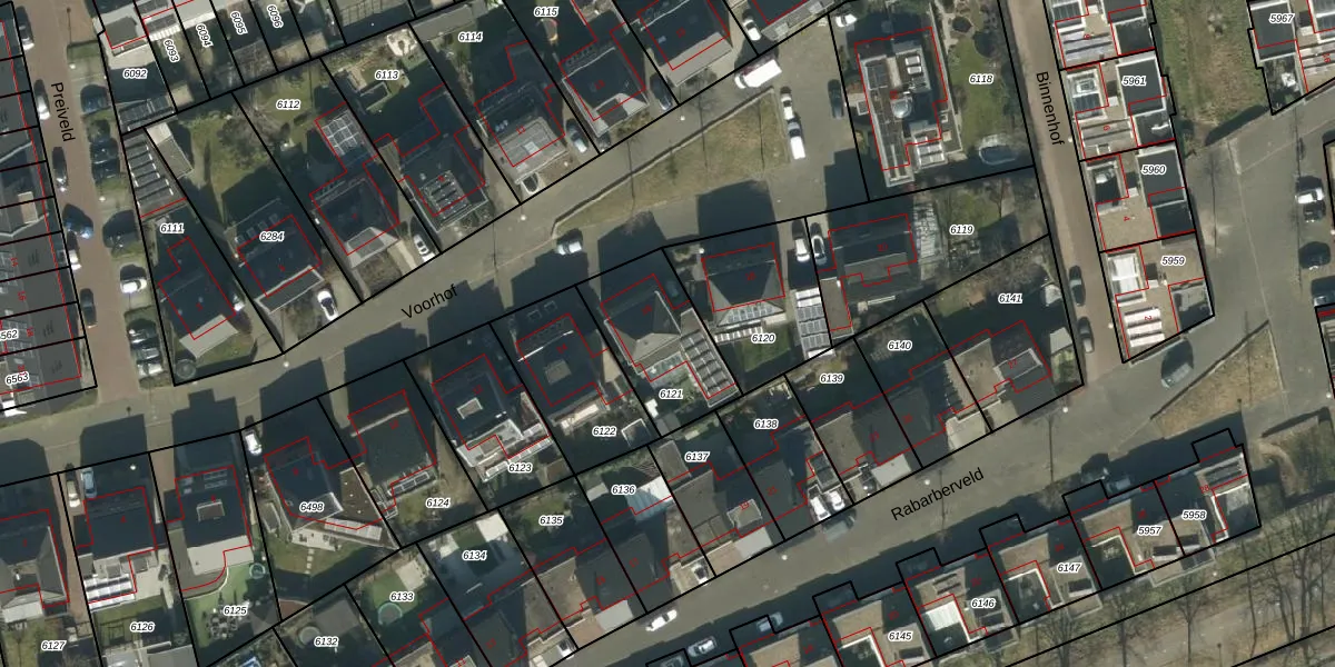 Het perceel waarop Voorhof 16 staat heeft een oppervlakte van 361 m². Dit is een groot perceel. De perceeloppervlakte wordt geregistreerd door het Kadaster. Gedetailleerde informatie over de maten van dit perceel kunt u vinden in het rapport Kadastrale kaart met maatvoering van Voorhof 16.
