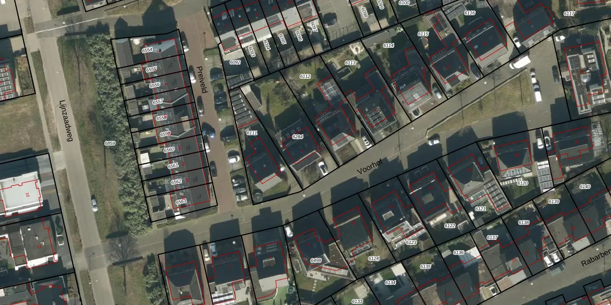 Het perceel waarop Voorhof 5 staat heeft een oppervlakte van 539 m². Dit is een groot perceel. De perceeloppervlakte wordt geregistreerd door het Kadaster. Gedetailleerde informatie over de maten van dit perceel kunt u vinden in het rapport Kadastrale kaart met maatvoering van Voorhof 5.