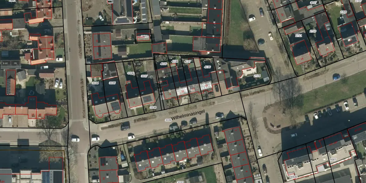 Gebruik de zoekbalk of klik op een perceel voor informatie over de adressen binnen dit perceel.