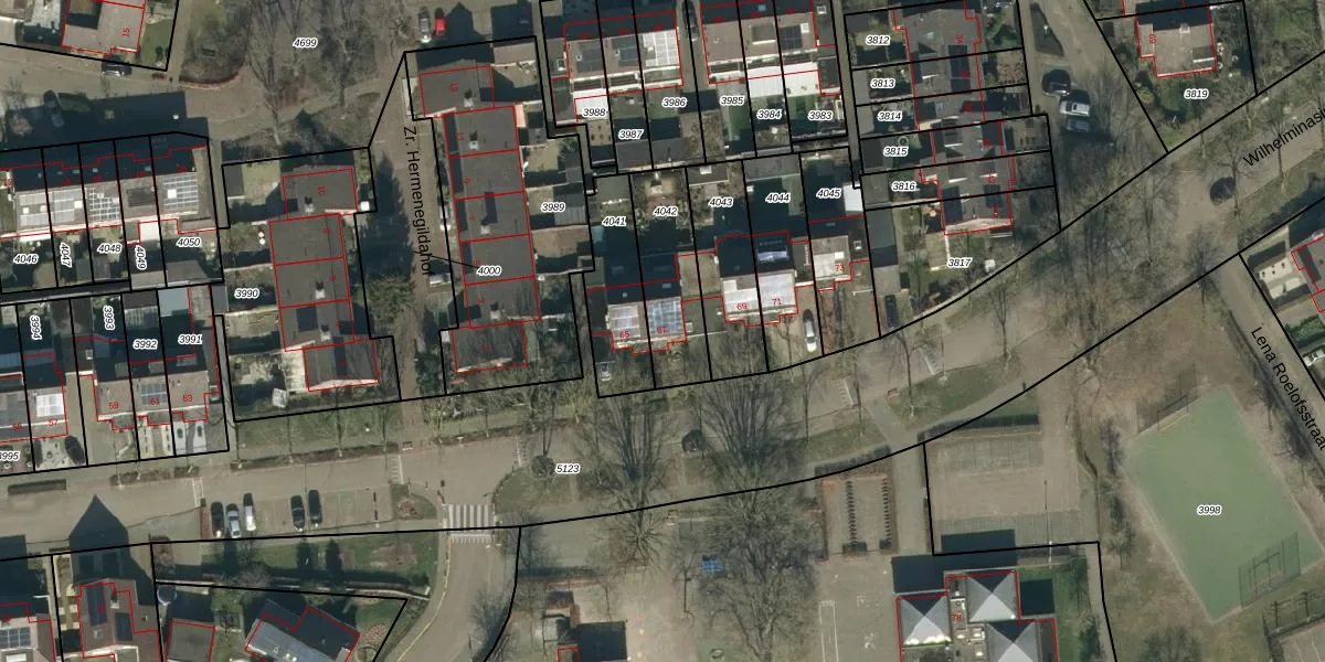 Gebruik de zoekbalk of klik op een perceel voor informatie over de adressen binnen dit perceel.