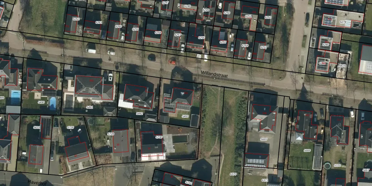 Het perceel waarop Willandstraat 104 staat heeft een oppervlakte van 555 m². Dit is een groot perceel. De perceeloppervlakte wordt geregistreerd door het Kadaster. Gedetailleerde informatie over de maten van dit perceel kunt u vinden in het rapport Kadastrale kaart met maatvoering van Willandstraat 104.