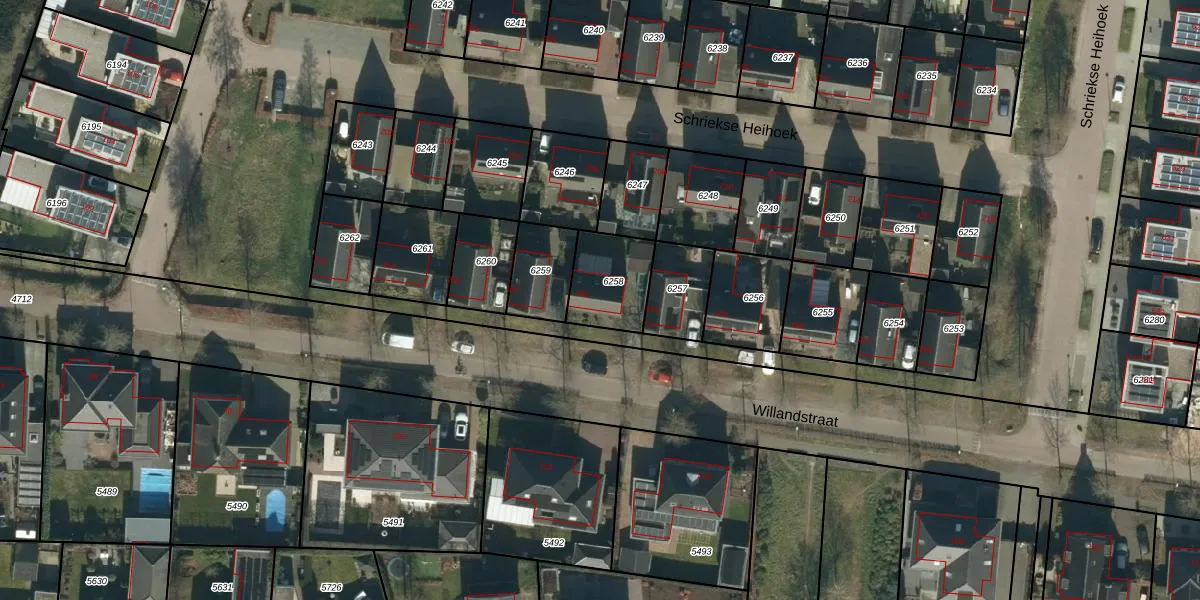 Gebruik de zoekbalk of klik op een perceel voor informatie over de adressen binnen dit perceel.