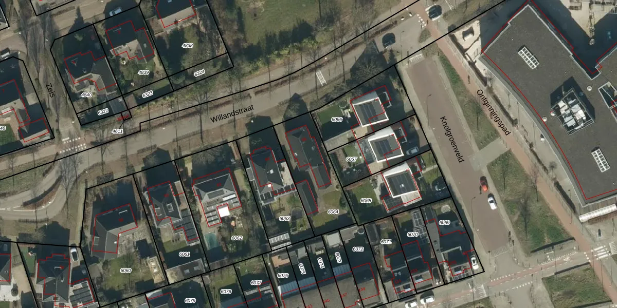 Het perceel waarop Willandstraat 66 staat heeft een oppervlakte van 526 m². Dit is een groot perceel. De perceeloppervlakte wordt geregistreerd door het Kadaster. Gedetailleerde informatie over de maten van dit perceel kunt u vinden in het rapport Kadastrale kaart met maatvoering van Willandstraat 66.