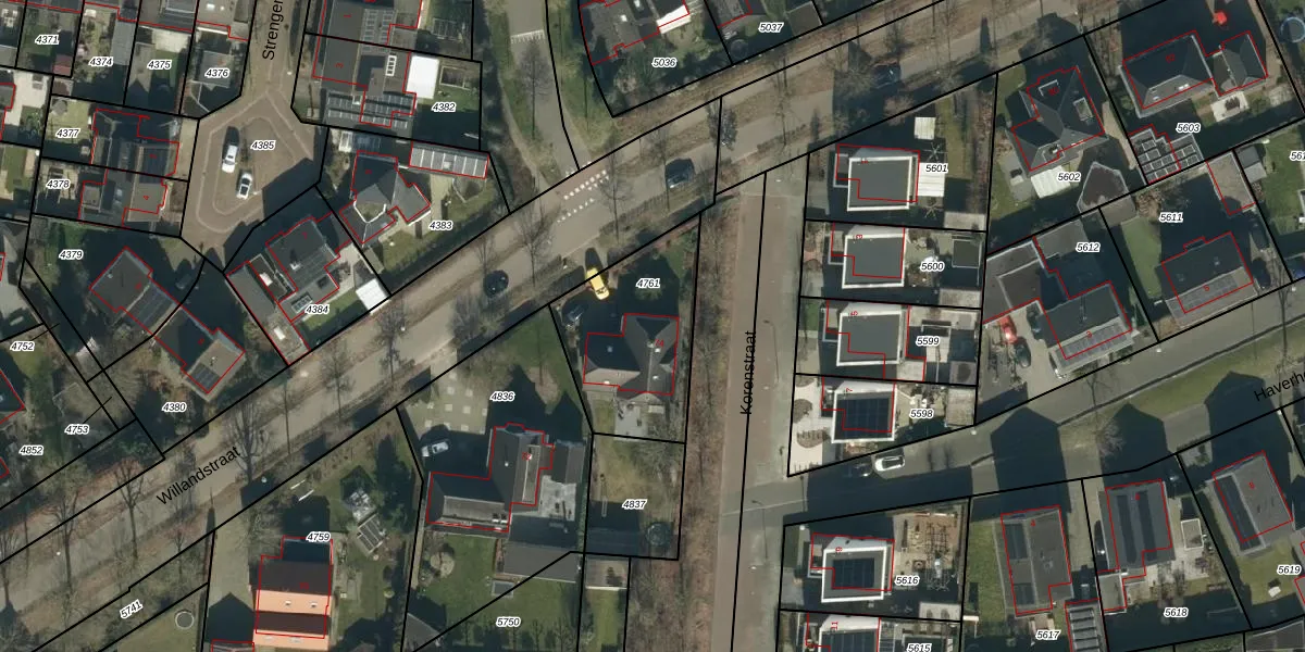Het perceel waarop Willandstraat 74 staat heeft een oppervlakte van 533 m². Dit is een groot perceel. De perceeloppervlakte wordt geregistreerd door het Kadaster. Gedetailleerde informatie over de maten van dit perceel kunt u vinden in het rapport Kadastrale kaart met maatvoering van Willandstraat 74.