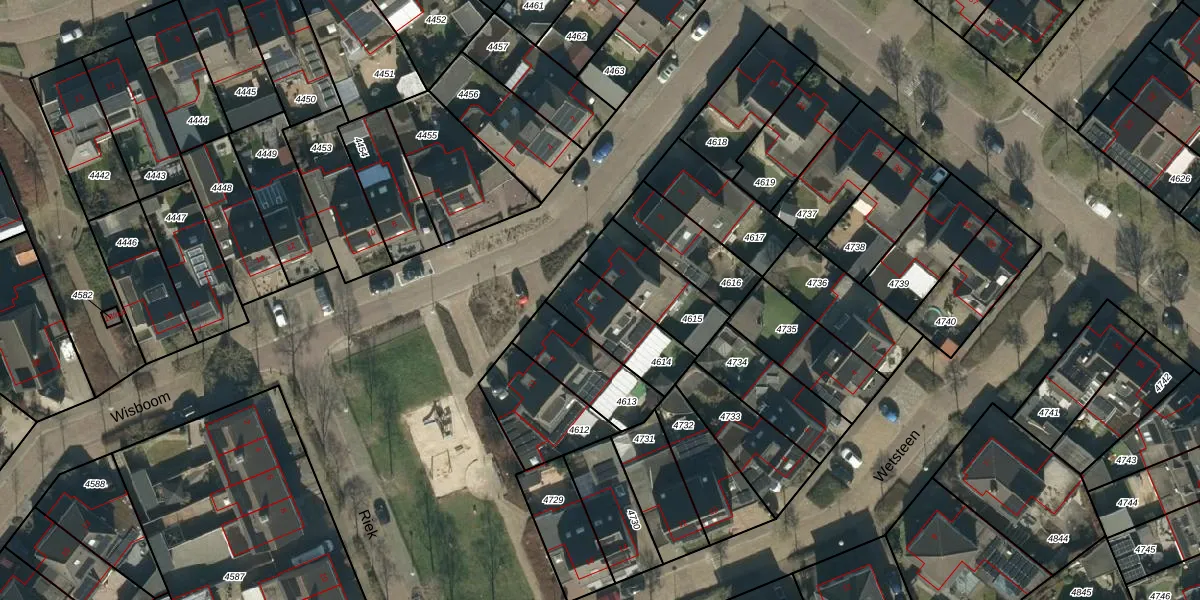Gebruik de zoekbalk of klik op een perceel voor informatie over de adressen binnen dit perceel.