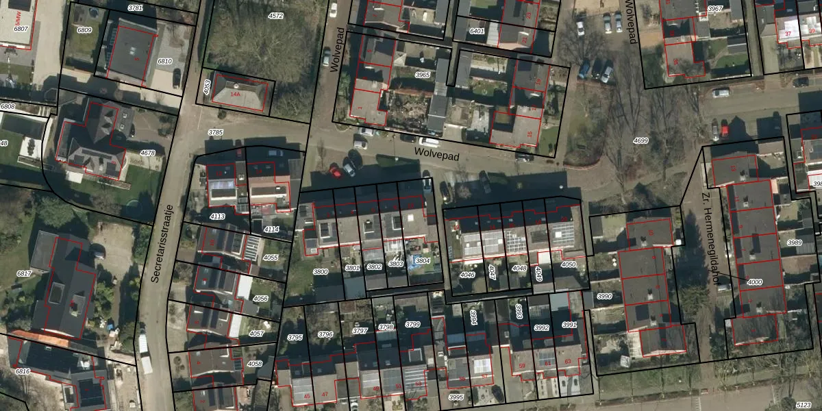 Gebruik de zoekbalk of klik op een perceel voor informatie over de adressen binnen dit perceel.