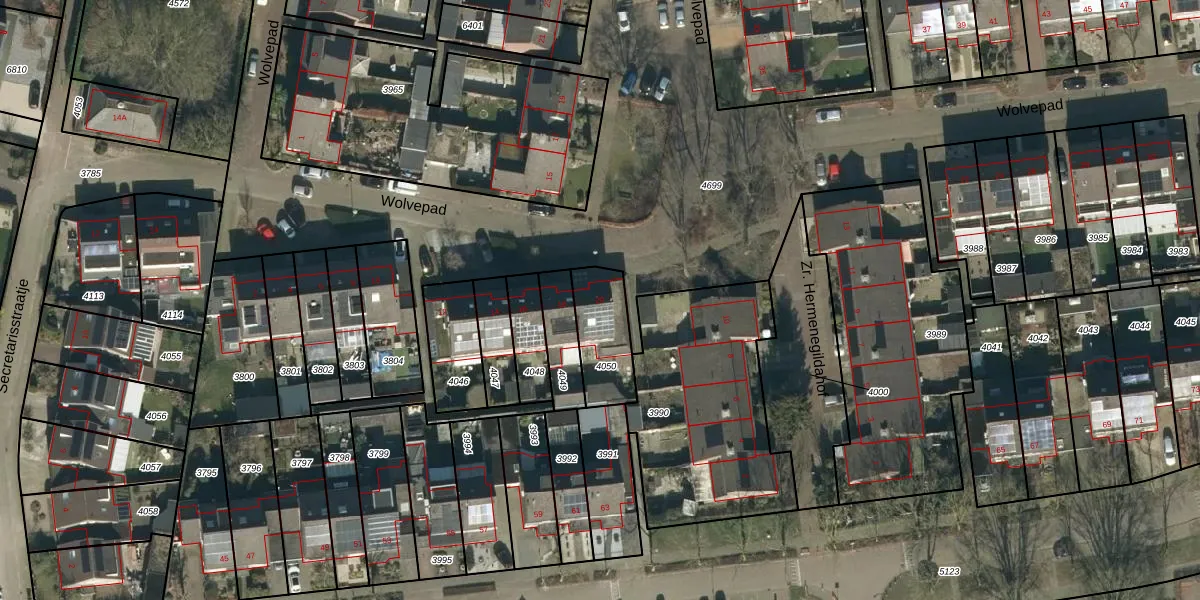 Gebruik de zoekbalk of klik op een perceel voor informatie over de adressen binnen dit perceel.