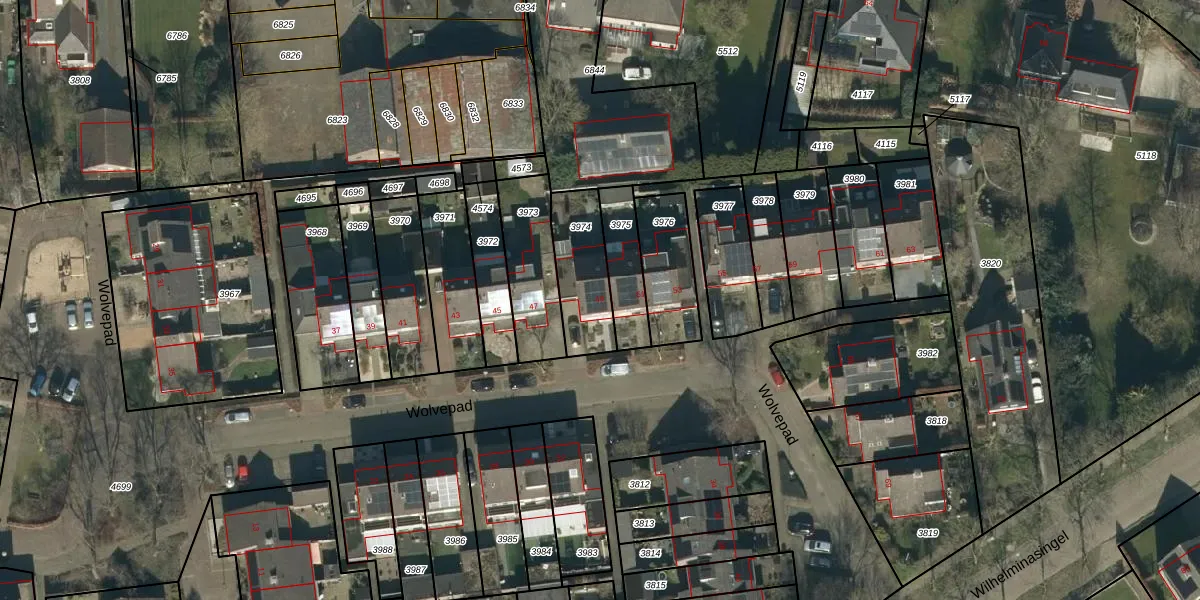 Gebruik de zoekbalk of klik op een perceel voor informatie over de adressen binnen dit perceel.
