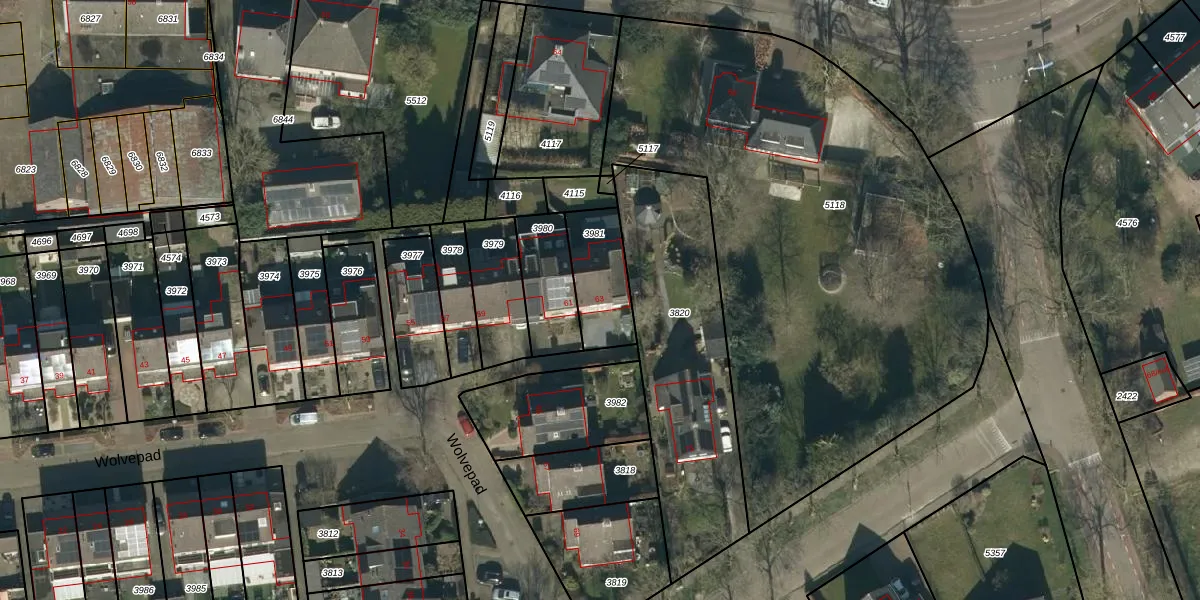 Gebruik de zoekbalk of klik op een perceel voor informatie over de adressen binnen dit perceel.