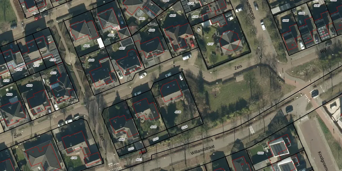 Het perceel waarop Zeis 1 staat heeft een oppervlakte van 584 m². Dit is een groot perceel. De perceeloppervlakte wordt geregistreerd door het Kadaster. Gedetailleerde informatie over de maten van dit perceel kunt u vinden in het rapport Kadastrale kaart met maatvoering van Zeis 1.